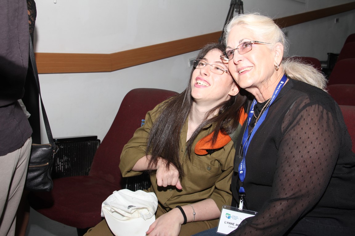 The author with a member of Special in Uniform, which integrates Israelis with disabilities into the IDF. |