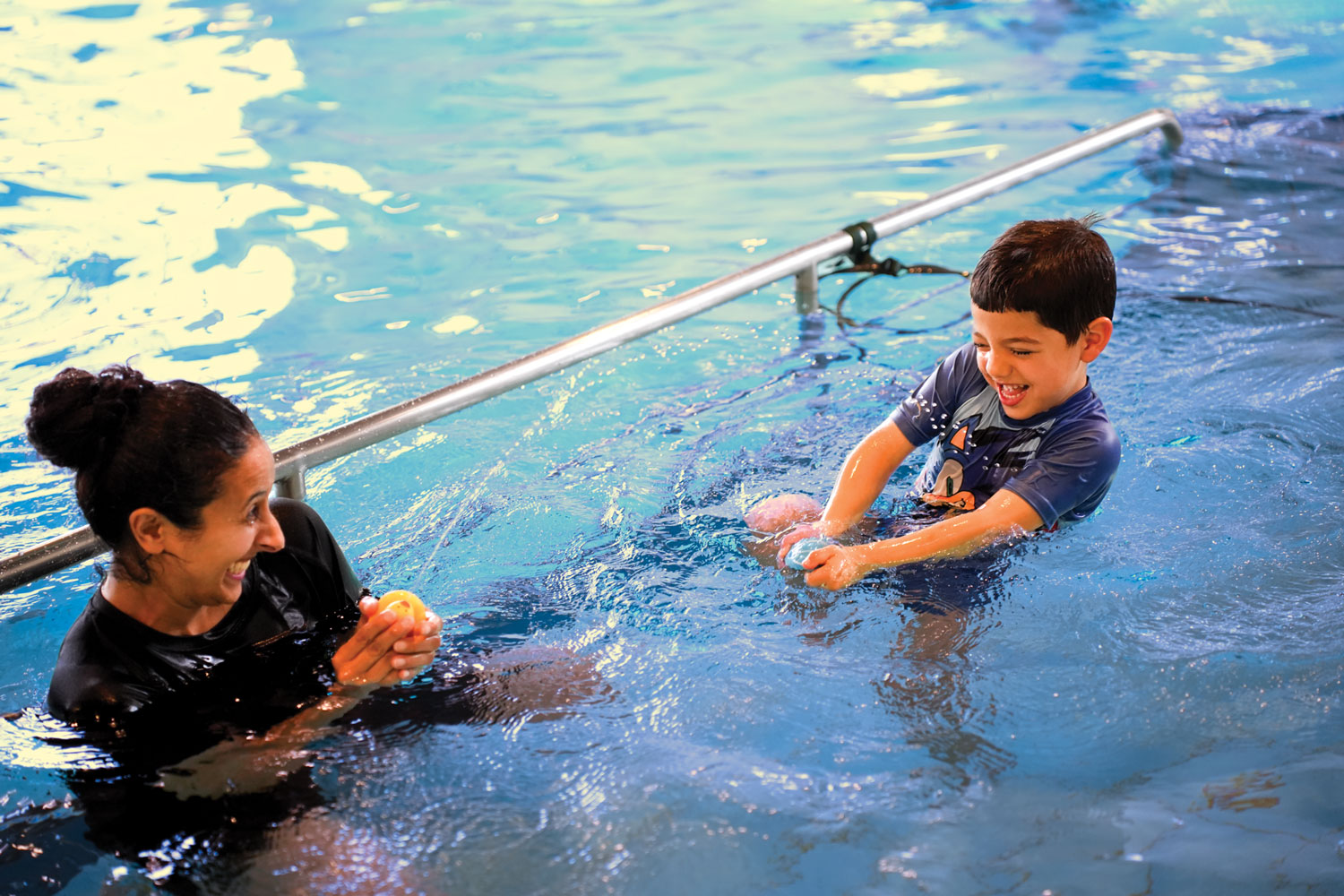 For Yael, now almost four years old, the water therapy provided a safe, restorative space to support her physical and emotional healing. During weekly sessions, Yael walks on floating mattresses and navigates various water-based obstacles, building confidence that carries over to the land. “The hydrotherapy helps build her strength and muscle development, and her overall sense of confidence,” Ariel explains. “It helps her acclimate to new situations.”