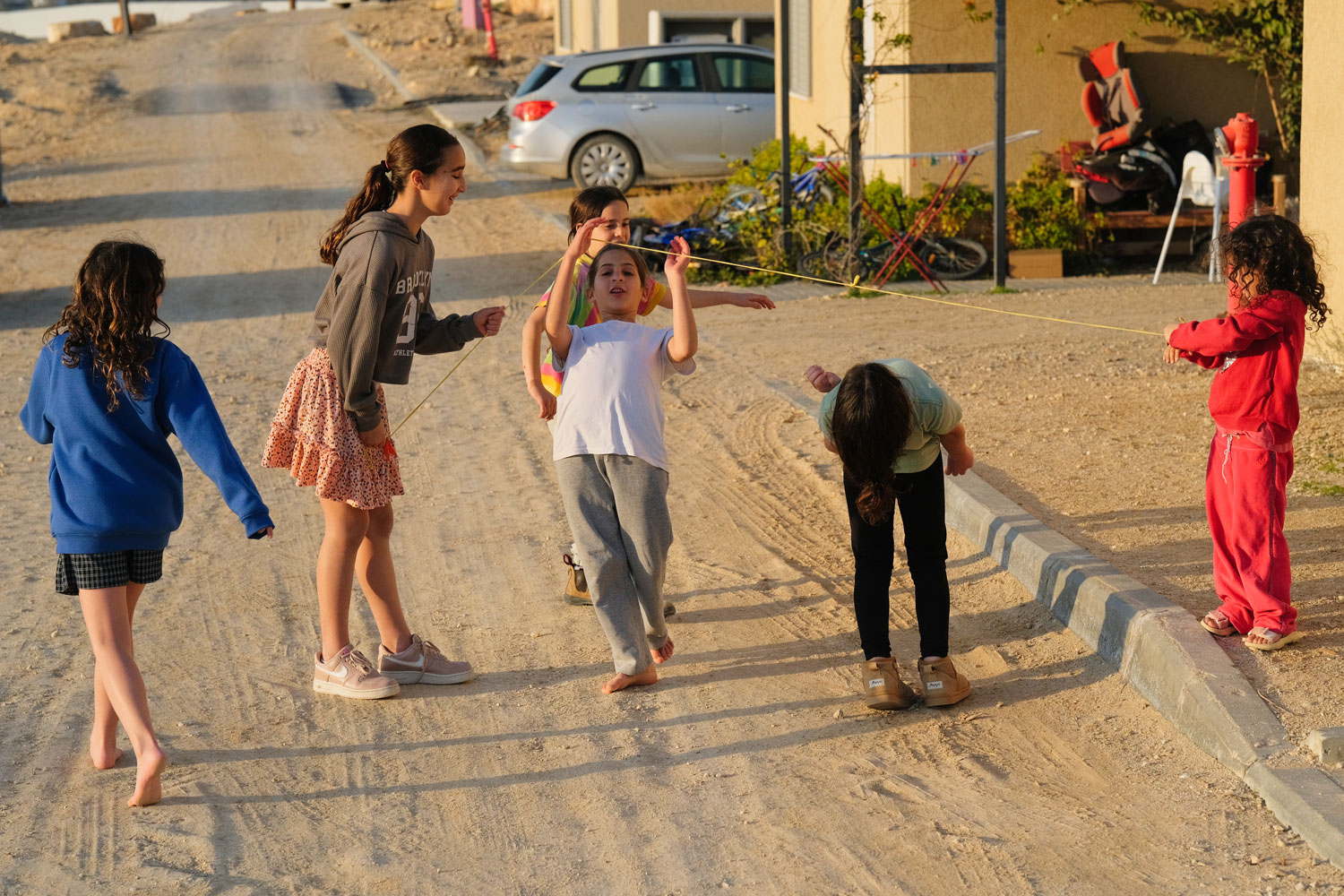 Children enjoy a level of independence that has largely disappeared from modern Israeli life. They play freely outdoors, often moving with ease from house to house. “I can start with just my daughter outside and end up with seven girls in my house,” Noga says. “Kids here start using cellphones much later.”