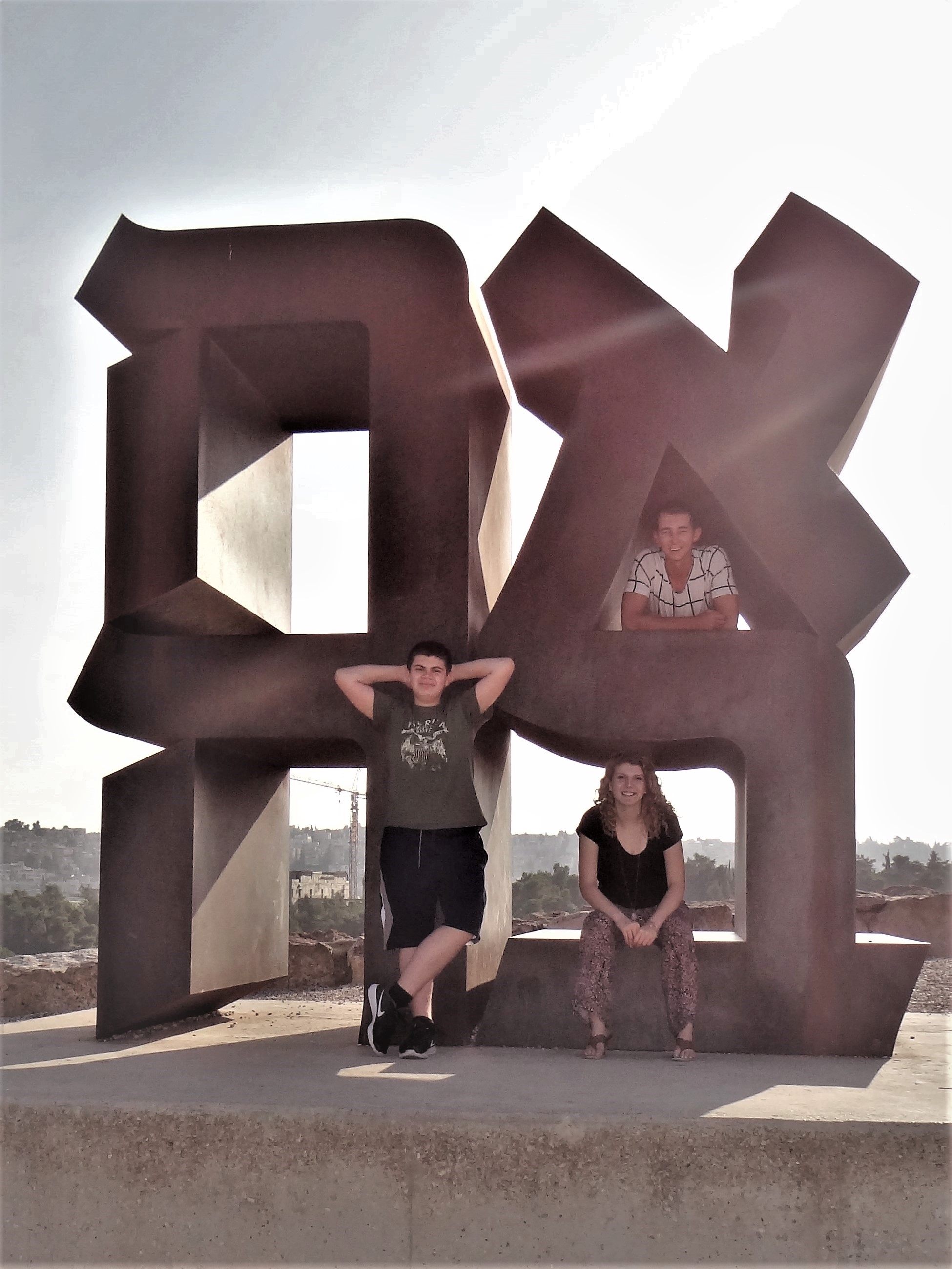Elisa and Richard's children pictured at the famous "ahava" monument in Israel