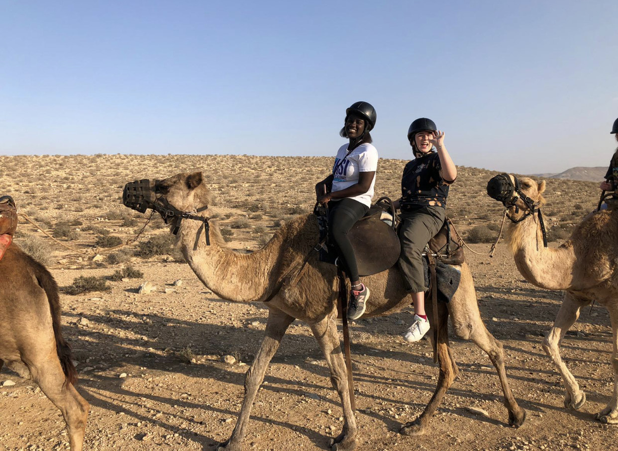 Lauren on camel back explores the Negev Desert with High School in Israel