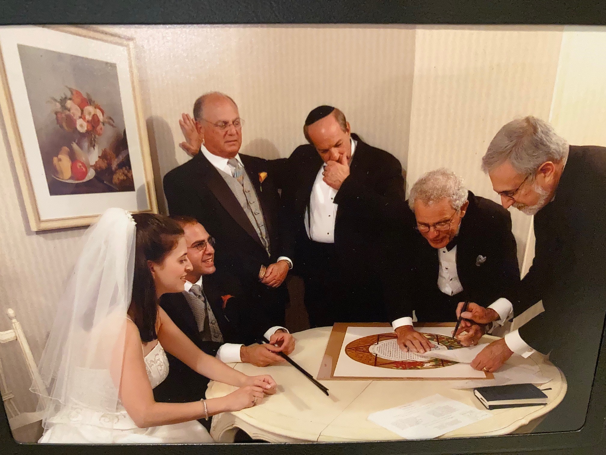 Brian and Tracy signing the Ketubah from David Mitchell